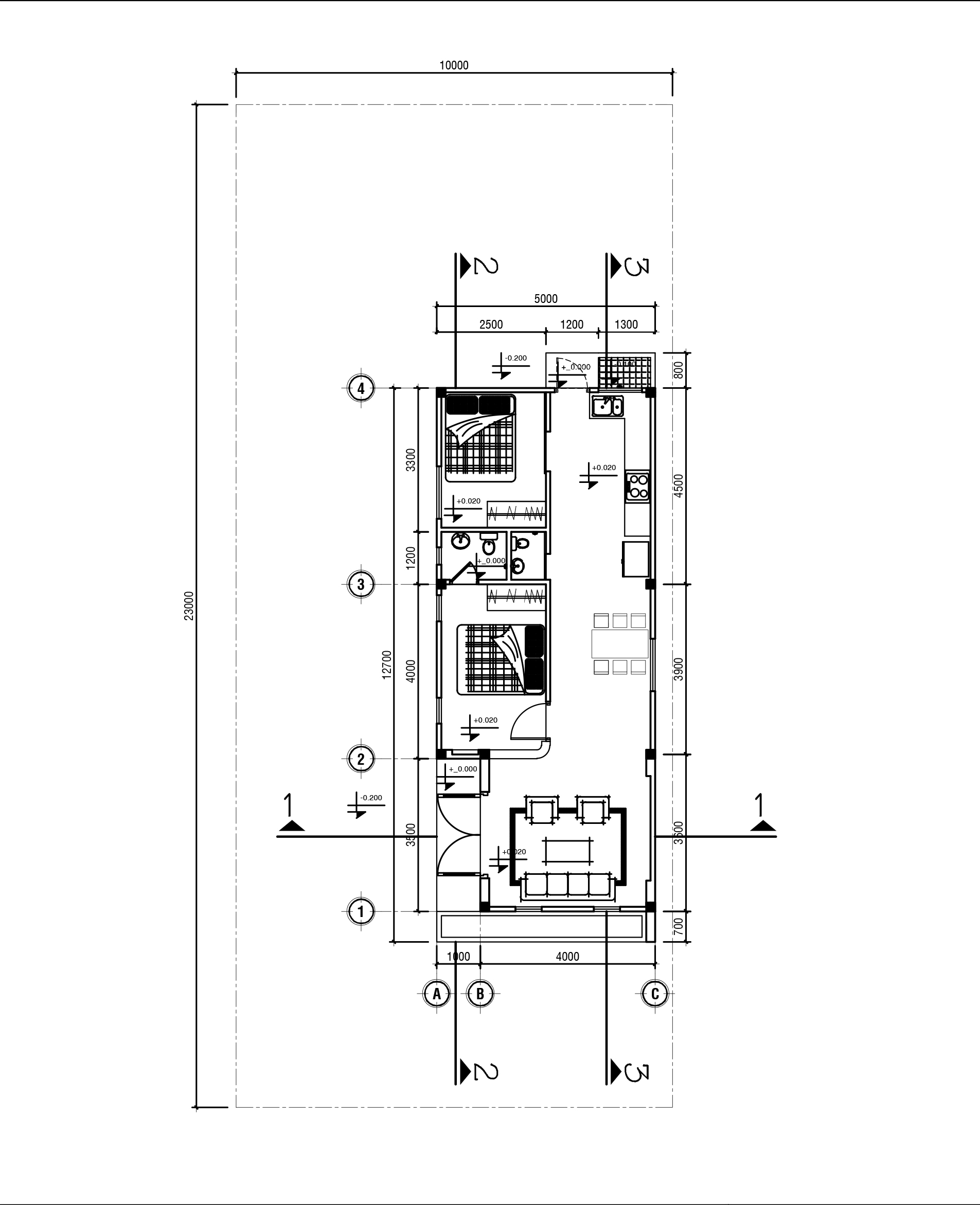Mặt bằng công năng sử dụng mẫu thiết kế nhà cấp 4 đẹp 2022 ở Bảo Lộc – Lâm Đồng này được bố trí khá đơn giản với các công năng chính là phòng khách đặt ngay cạnh sảnh chính, phía trong là phòng bếp và ăn. Ngôi nhà được thiết kế bố trí 2 phòng ngủ đảm bảo nhu cầu sử dụng cho các thành viên trong gia đình.