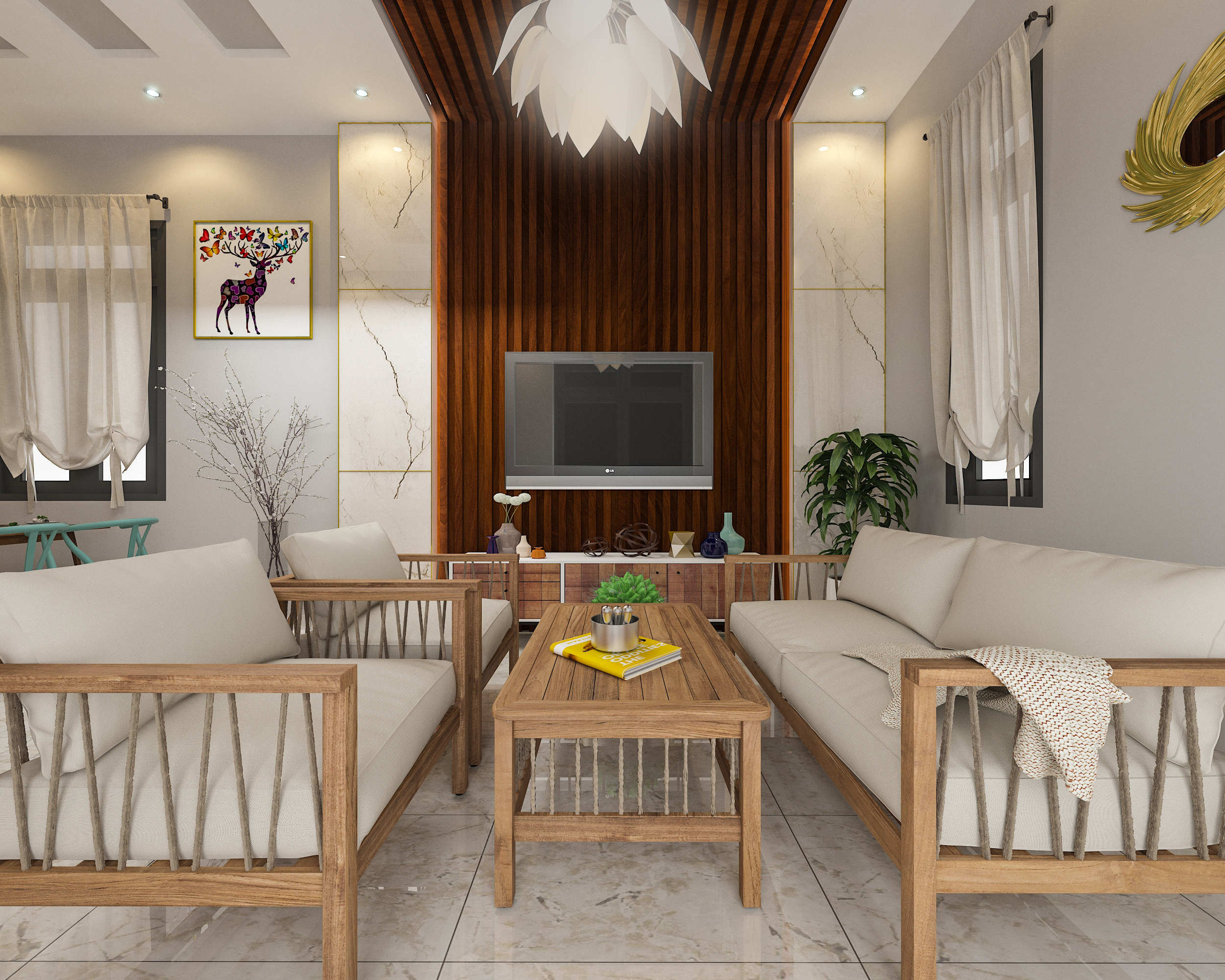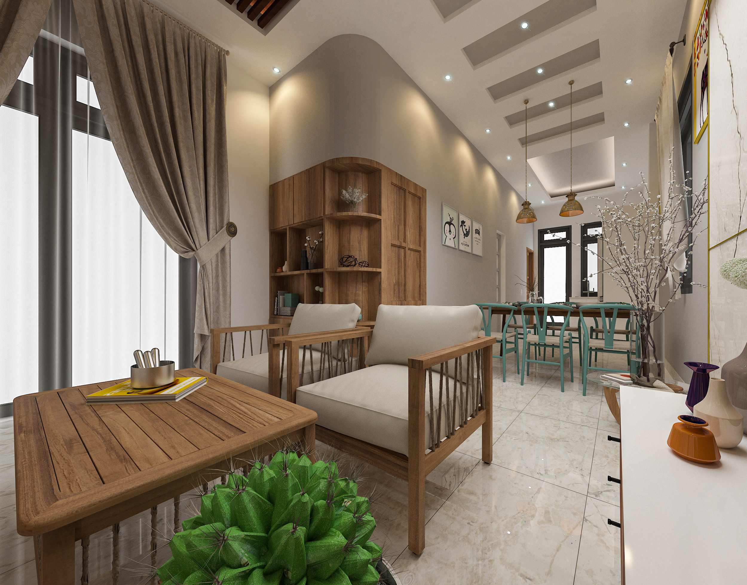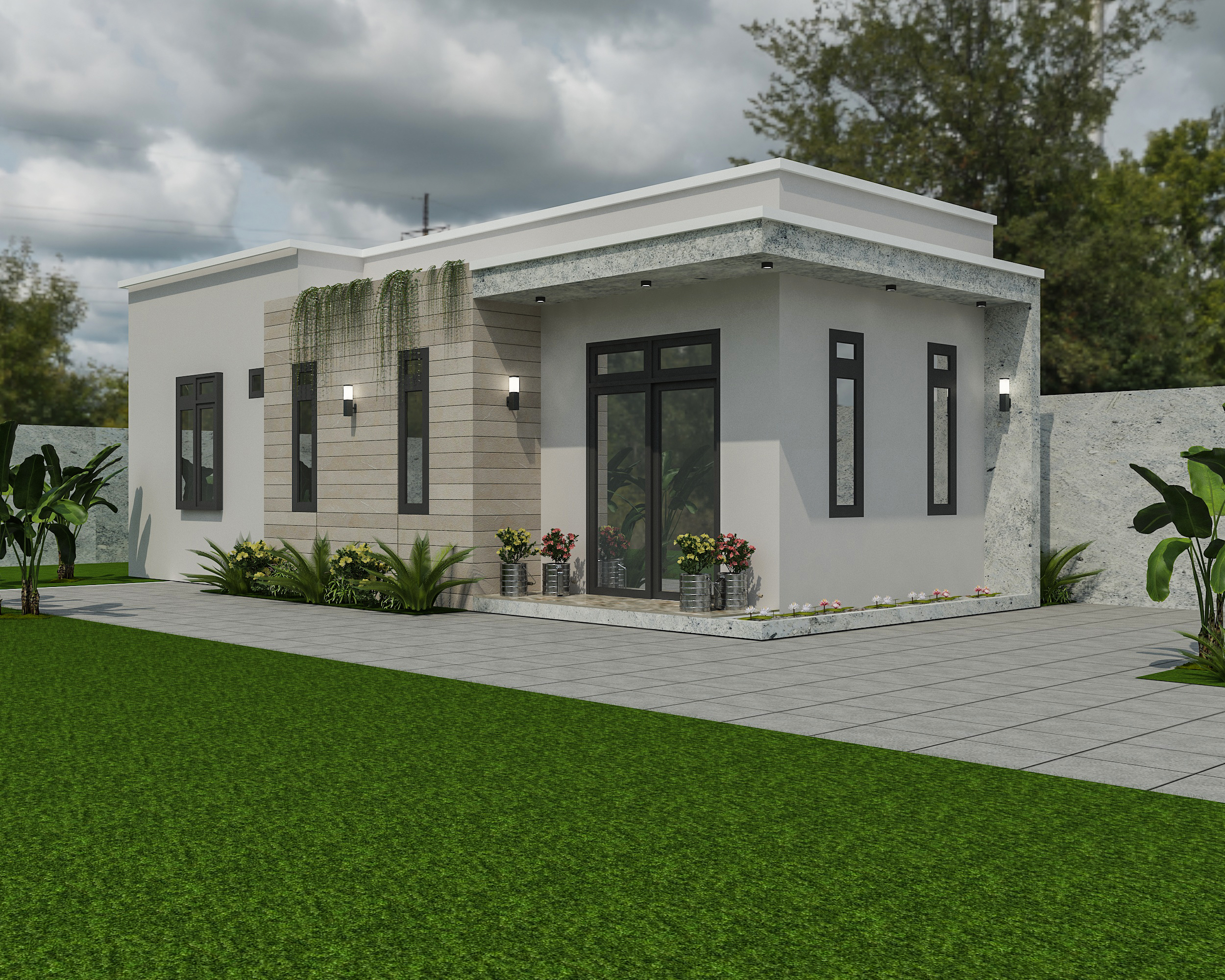 Nằm giữa vùng không gian thoáng đãng, luôn hài hòa với cảnh quan thiên nhiên xung quanh. Mang đến một bầu không khí vô cùng trong lành, mát rượi. Chất lượng cuộc sống của những gia đình từ đó được nâng cao lên rõ rệt. Đó là nhờ vào sự kết hợp hài hòa giữa những vật liệu và phong cách thiết kế của các kiến trúc sư đã tạo nên một ngôi nhà cấp 4 mái bằng 3 phòng ngủ 5x20m với sự thoải mái, sinh động trong môi trường sống.