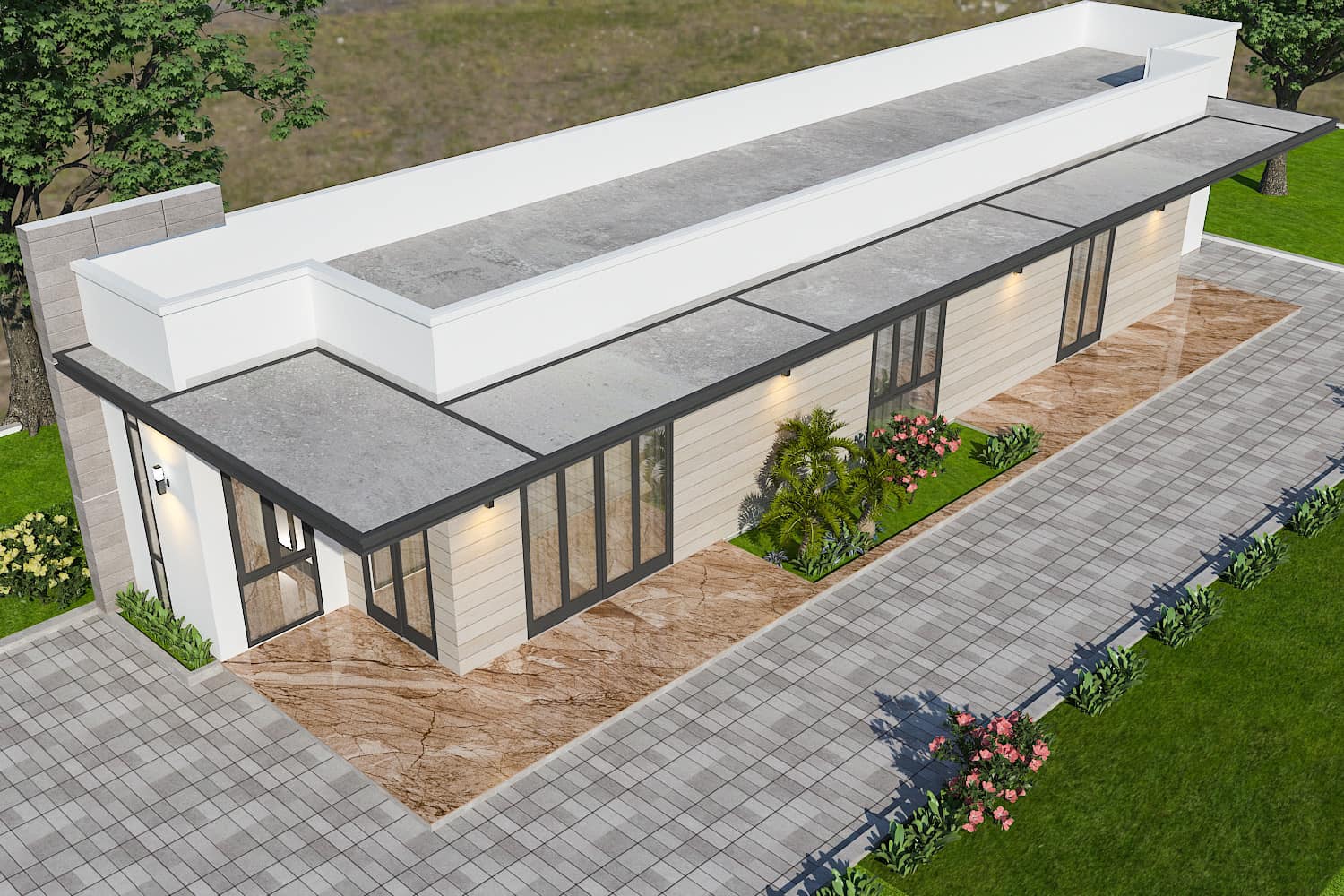 Xu hướng hiện nay ở các vùng nông thôn rất chuộng những mẫu nhà cấp 4 mang hơi hướng hiện đại nó thể hiện sự sang trọng nhưng rất nhẹ nhàng, chính vì thế mà chủ nhà anh Thắm đã chọn phương án thiết kế cho căn nhà cấp 4 của mình. Ở đây là vùng đồi núi trồng cà phê đất tương đối rộng rãi nhưng chủ nhà chỉ làm với diện tích ngang 5,5m dài 27m với công năng sử dụng phòng khách, phòng thờ, bếp, ăn và 3 phòng ngủ, wc và phòng tắm được bố trí phía sau nhà.